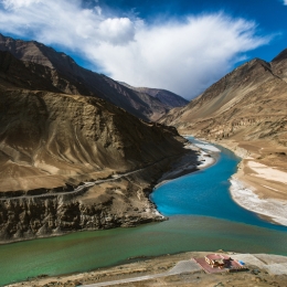 Visit the Confluence of the Indus and Zanskar Rivers, a beautiful spot where the two rivers meet, offering a mesmerizing view.